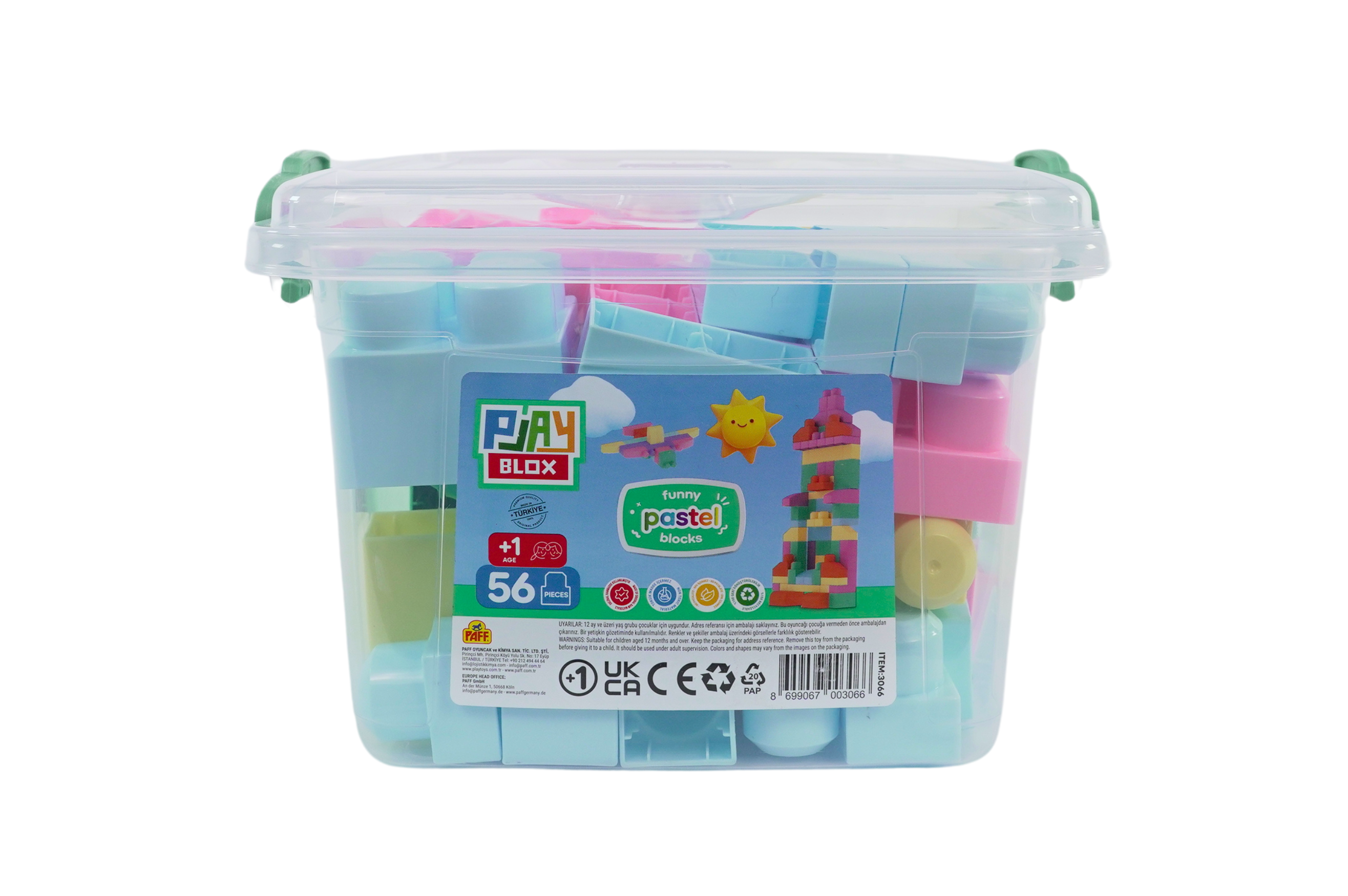 Introduce your little ones to a world of gentle colours and endless creativity with the Play Blox Funny Pastel Blocks 56-piece set. This charming pastel collection is designed to inspire young builders to create and learn while enhancing their fine motor skills in a playful, engaging way.